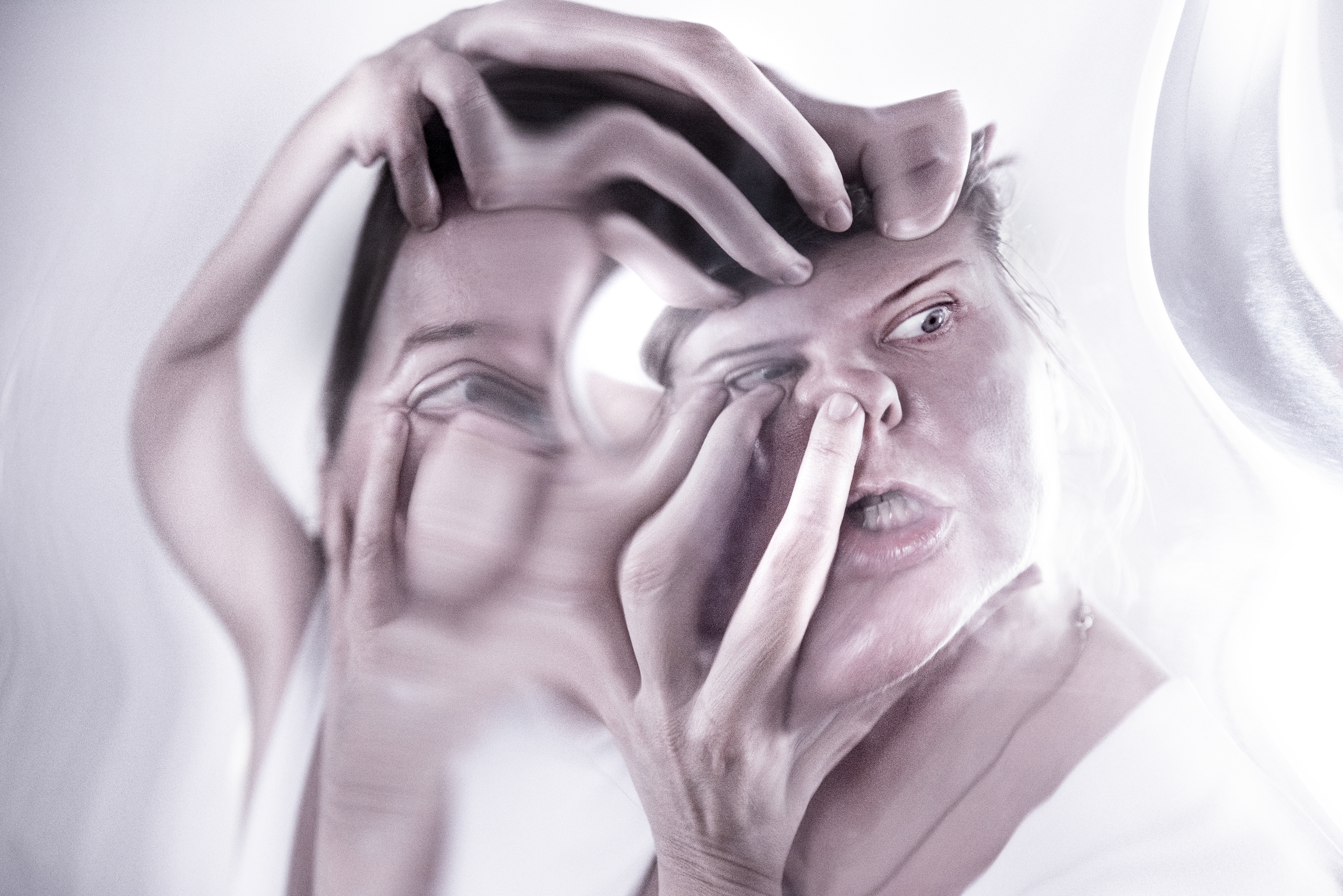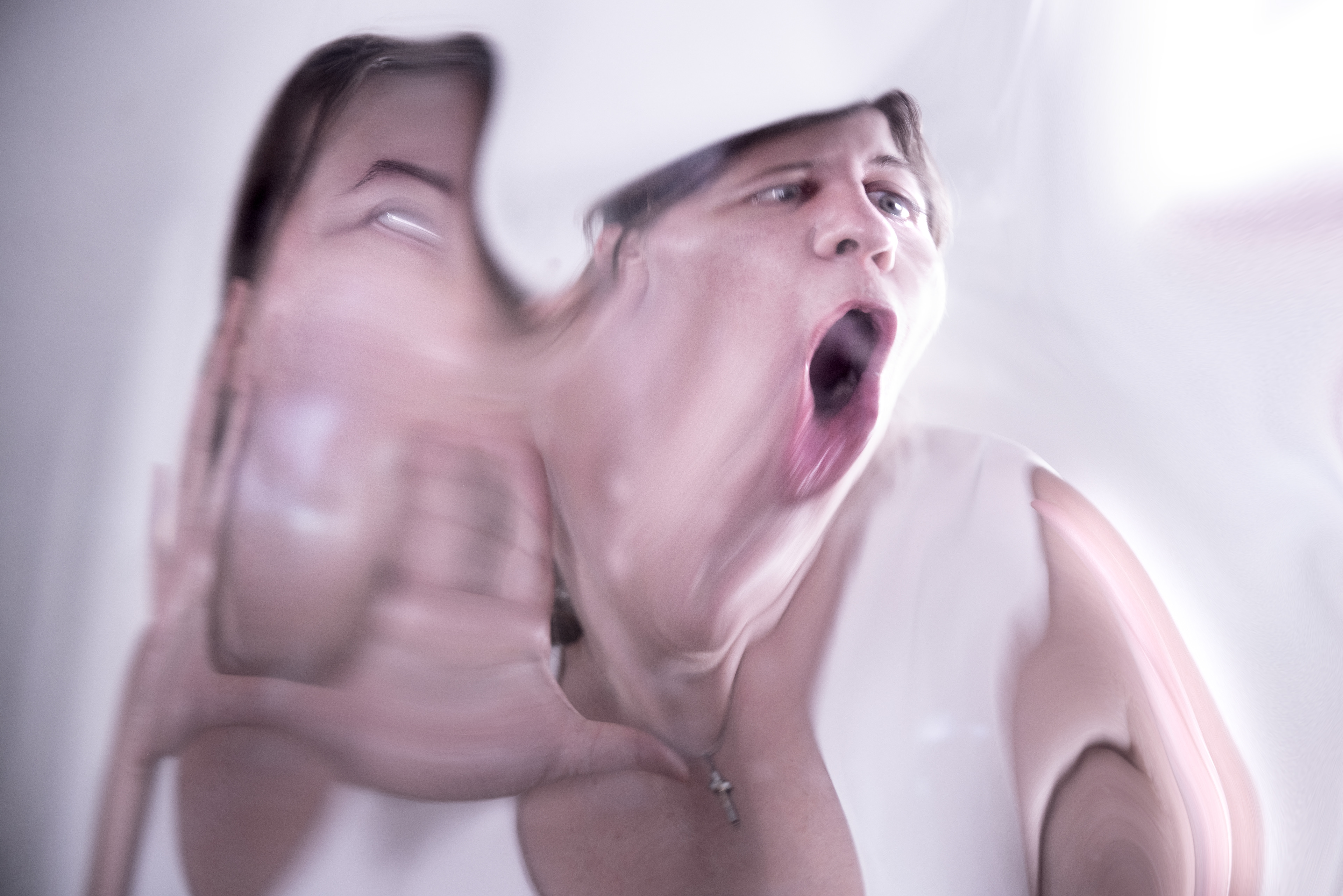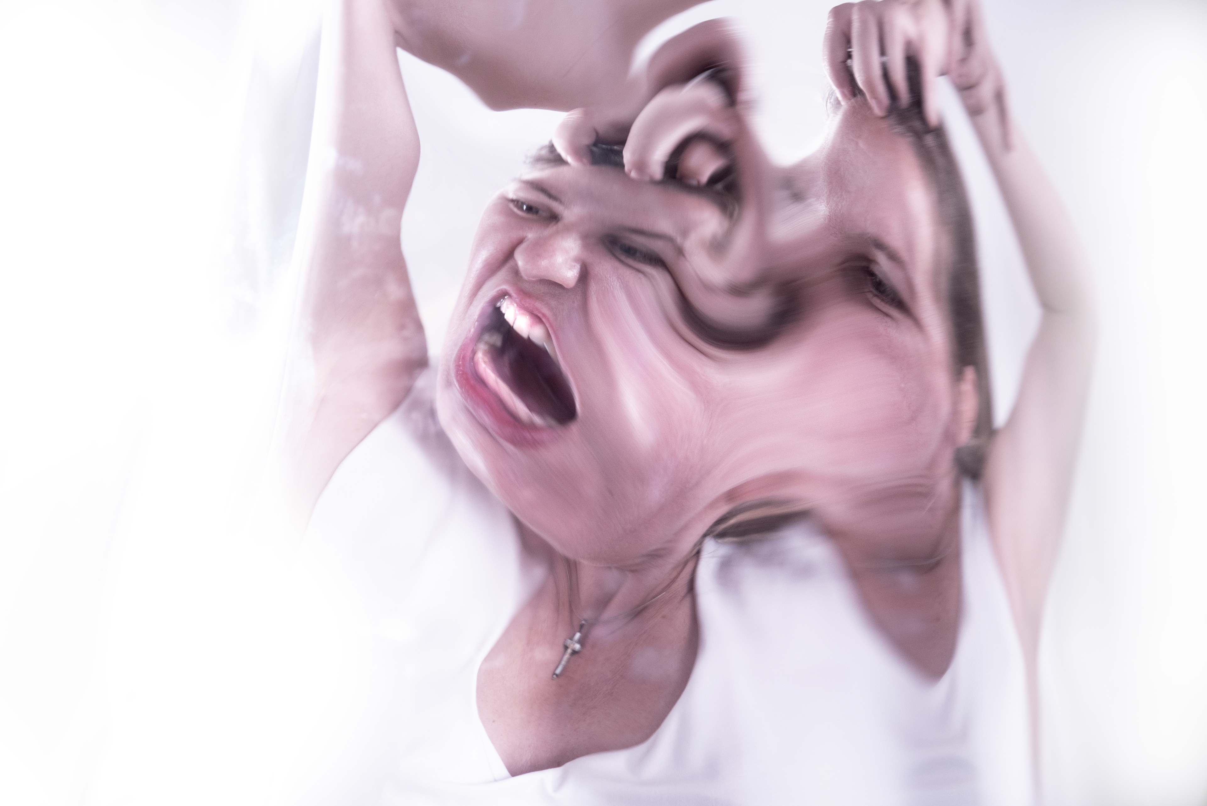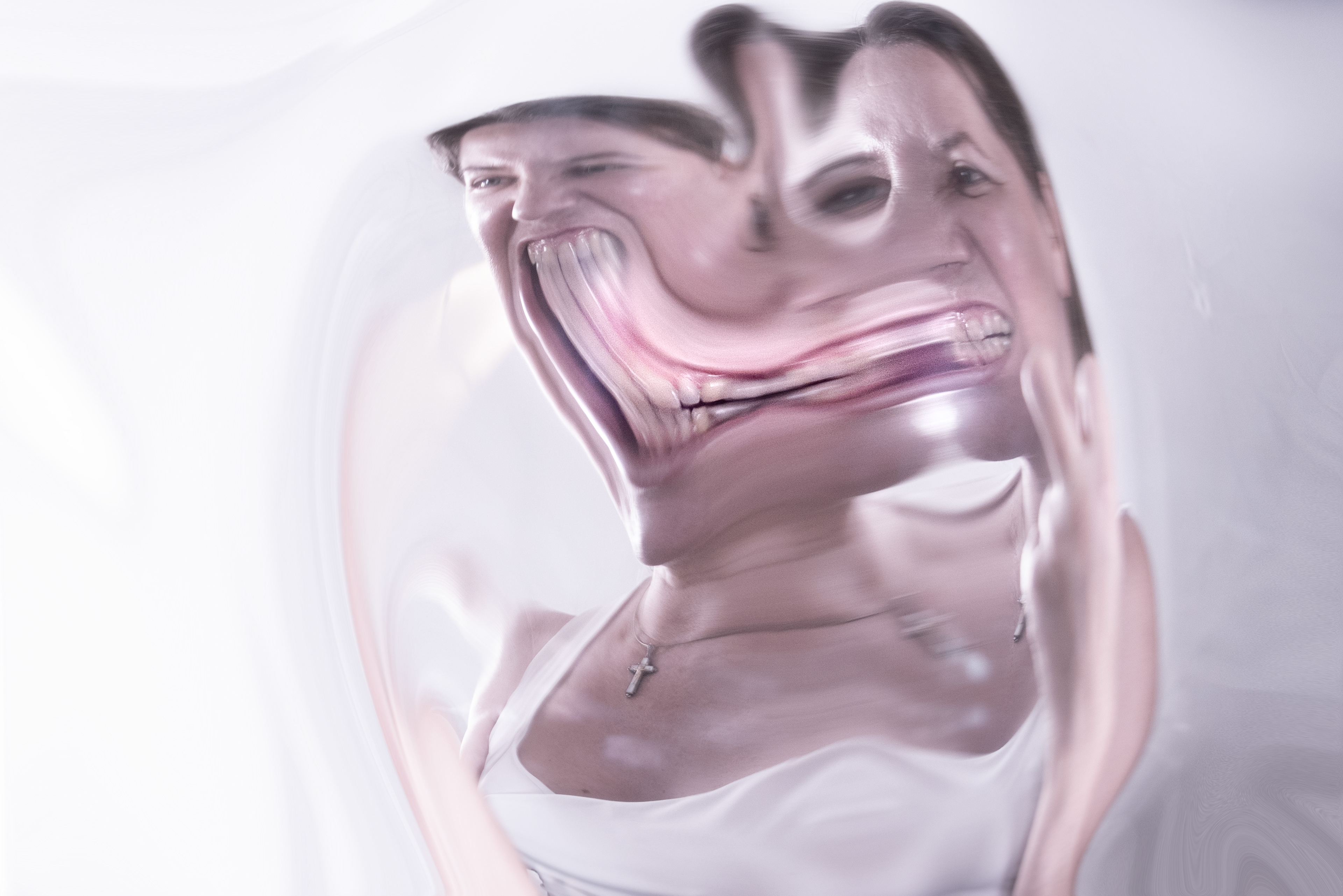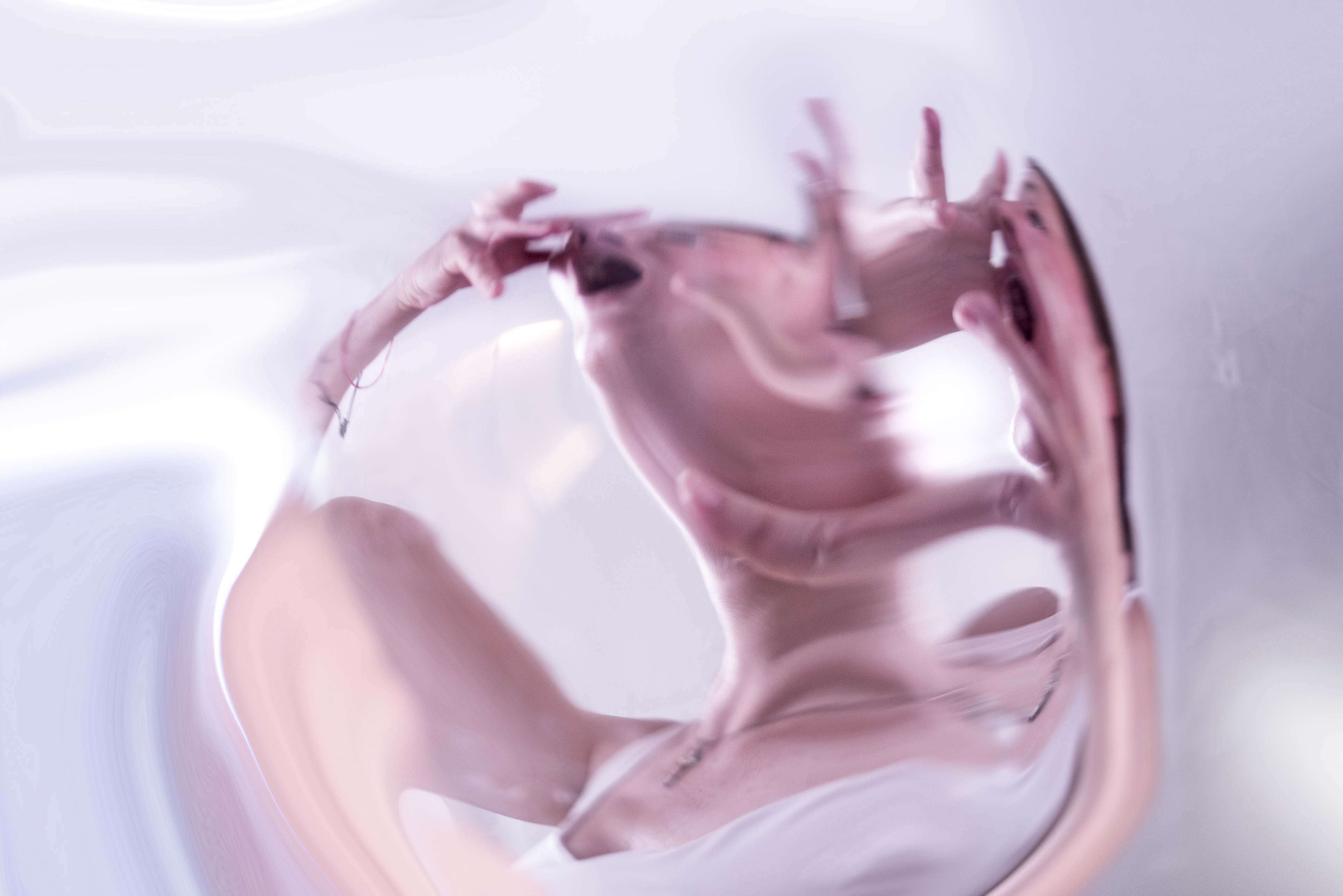 Between two voids, the subject reveals itself torn: between the mask shown to the world and the emptiness within. Faces and hands become amorphous, not as deformity but as truth — fragility, anxiety, panic, and solitude emerge in raw forms, showing the inner movement of the soul. What is amorphous exposes what ideals hide: uncertainty, vulnerability, liquid identity. In an age dominated by artificial perfection and surface polish, these images reclaim the human from the crack: pain as origin of urge of subjectivity, fragility as root of authenticity, emotion as resistance. Not polished, not idealized — but raw, honest, emotionally charged contemporary photography.
